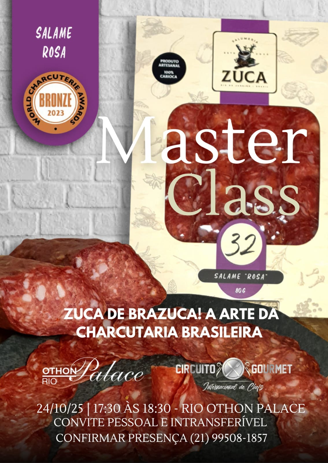 No International Catering Cup 2025, Felipe Nobrega — fundador da Zuca Salumeria, primeira charcutaria brasileira e carioca a conquistar reconhecimento internacional e a única da América Latina premiada no Mundial de Charcutaria em Londres — apresenta a Masterclass “Zuca de Brazuca! A Arte da Charcutaria Brasileira”.